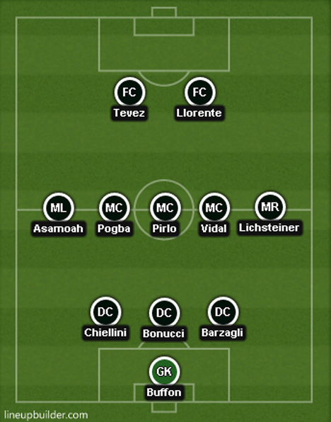 Itu disebabkan lebarnya jarak antara barisan tengah dan depan Juventus, yang secara tidak langsung membuat Tevez sedikit turun dan menjauhi gawang sambil mencoba membuka ruang bagi duetnya atau memberi jalan Pogba dan Vidal untuk menusuk dari lini kedua.