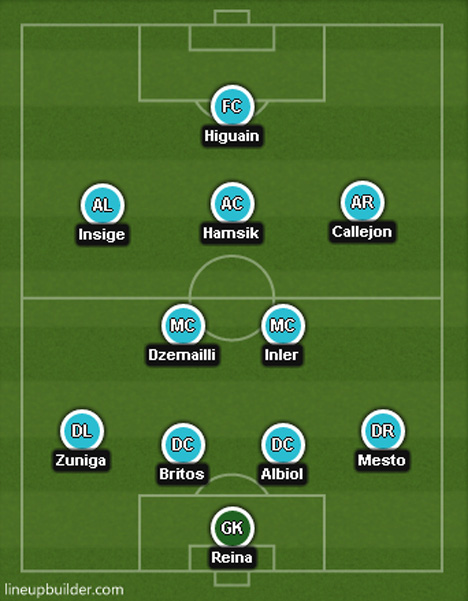 Sementara itu, dengan tridente gelandang serang Marek Hamsik, Jose Callejon/Goran Pandev dan Lorenzo Insigne/Dries Mertens di belakangnya, Higuain bisa mendapat lebih banyak suplai bola-bola matang untuk membobol gawang lawan.