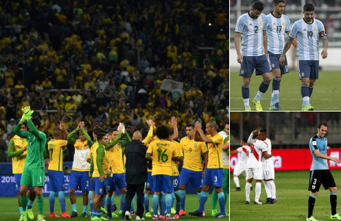 Brasil sejauh ini memimpin dengan 33 poin dengan empat laga tersisa, diikuti Kolombia (24), Uruguay dan Chile (23). Argentina (22) di peringkat lima, posisi untuk inter-confederation playoff. Uruguay dan Argentina masih harus saling berhadapan, yang berarti tak mungkin lagi bagi dua tim itu untuk melempar Brasil dari empat besar. Artinya, Selecao sudah pasti lolos otomatis ke Rusia 2018.