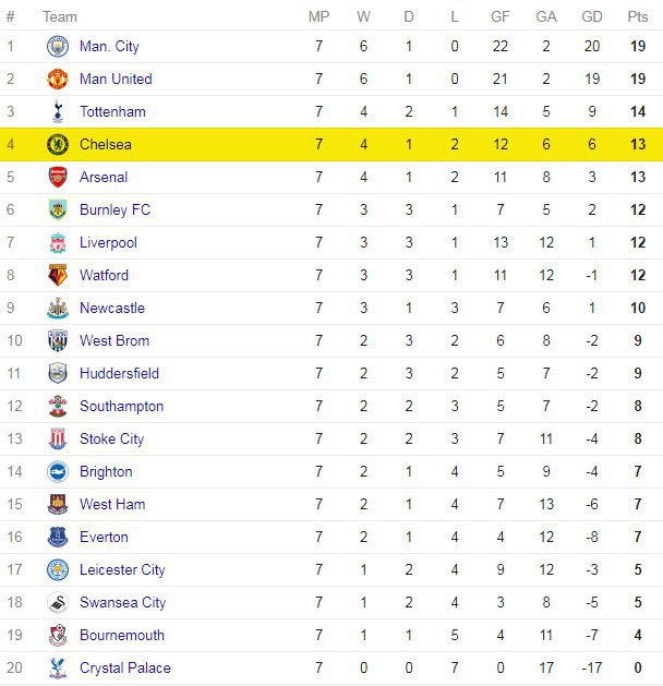 Chelsea pun tertahan di peringkat empat, tertinggal enam poin dari Manchester City dan Manchester United, serta satu poin di belakang Tottenham.