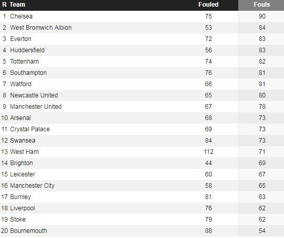 90 - Chelsea have conceded more fouls than any other team in the Premier League this season. Hack.