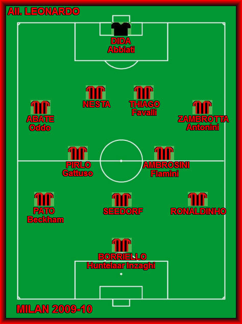 Setelah jeda, Leonardo mengganti Ignazio Abate dengan Filippo Inzaghi. Leonardo mengubah skema awal 4-4-2 menjadi 4-2-3-1. Waktu itu, lahirlah sistem yang baru: empat di belakang, dua di tengah, dan limpahan 'fantasi' di lini serang. Alexandre Pato di kanan, Clarence Seedorf gelandang serang, di kiri, dan Inzaghi striker.