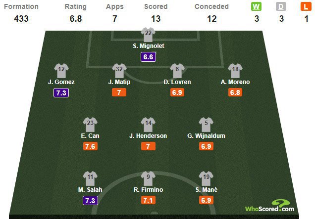 Baru enam pemain Liverpool yang sudah mencetak gol di liga musim ini. Enam pemain tersebut adalah Mohamed Salah, Sadio Mane, Philippe Coutinho, Roberto Firmino, kapten Jordan Henderson dan Daniel Sturridge.
