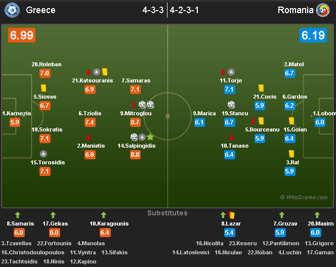 Di Piraeus, Marica tak berkutik. Hanya 1 shot yang dibukukannya. Rumania beruntung. Meski Marica tersendat, kombinasi Gabriel Torje dan Bogdan Stancu sukses memberi mereka satu gol tandang yang berharga. Jika tak ada gol itu, tugas Rumania pada leg kedua di Bucharest pasti akan lebih berat.
