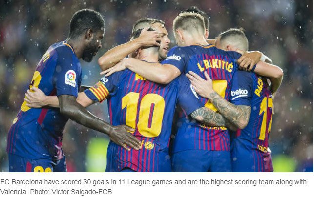 Barcelona pun kini memiliki 31 poin dari 11 pertandingan. Poin-poin itu didapatkan Barcelona dari sepuluh kemenangan dan satu hasil imbang. Bersama Valencia (M8 S3) dan Atletico Madrid (M6 S5), mereka belum sekalipun tersentuh kekalahan.