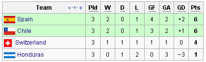 Spanyol menang 2-1 dan mengamankan posisi teratas dengan keunggulan selisih gol atas Chile. Spanyol mengirim Chile ke hadapan juara Grup G, Brasil.