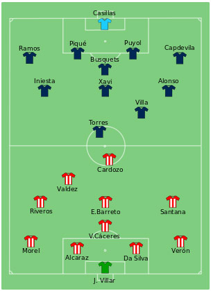 Laga ini sendiri diwarnai kegagalan penalti Oscar Cardozo (Paraguay) dan Xabi Alonso (Spanyol).