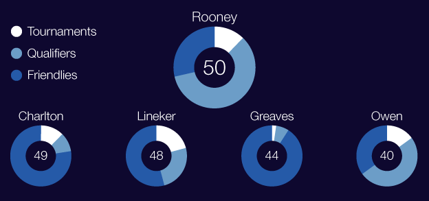 Pertama, BBC coba membandingkan banyaknya gol yang telah dicetak Rooney di sejumlah putaran final, babak kualifikasi dan uji coba. Dari tabel yang dihimpun, terlihat memang sang pemain lebih banyak mencetak gol-golnya tersebut dari ajang kualifikasi (30 gol).