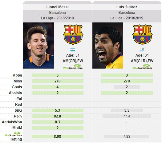 Hingga jornada 3, Messi (4 gol) dan Suarez (2 gol) telah menyumbangkan enam gol untuk Barcelona. Bale (3 gol) dan Benzema (4 gol) untuk sementara unggul satu gol atas pasangan penyerang dari Barcelona.