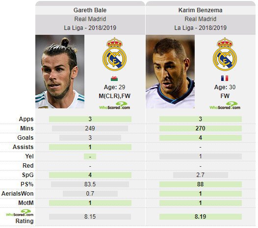 Bale dan Benzema terbukti sanggup mengemban tanggung jawab mencetak gol pasca-Ronaldo. Bale sudah mengemas tiga gol, sedangkan Benzema telah mengukir empat.