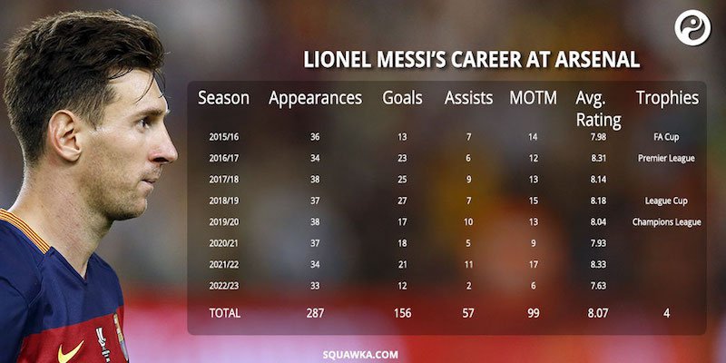 Messi sendiri menjadi tokoh sentral dalam kesuksesan Arsenal, mampu mencetak 23 gol dalam 24 pertandingan di Premier League. Namun Messi kemudian gagal mendapatkan Ballon d'Or karena hanya berada di peringkat tiga, di bawah Cristiano Ronaldo dan Neynar.
