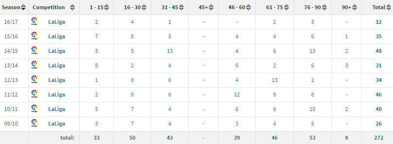 Top scorer/Pichichi: 3 (2010/11, 2013/14, 2014/15).