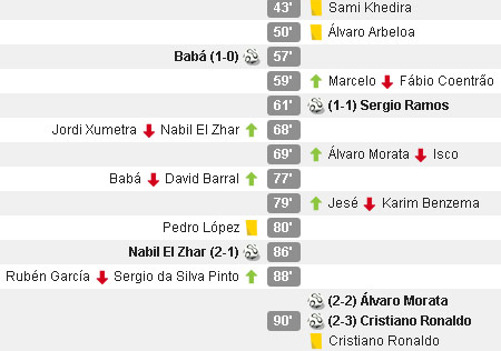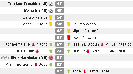 - Real Madrid memenangi empat pertandingan terakhirnya di La Liga dengan mencetak rata-rata lima gol per laga. Mereka mengincar lima kemenangan beruntun pertamanya di tahun 2014.