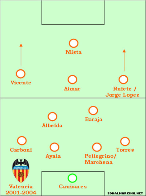 Salah satu kunci kesuksesan Valencia selama periode tersebut adalah formasi 4-2-3-1 racikan Benitez yang ditunjang oleh talenta-talenta berbakat di skuatnya.