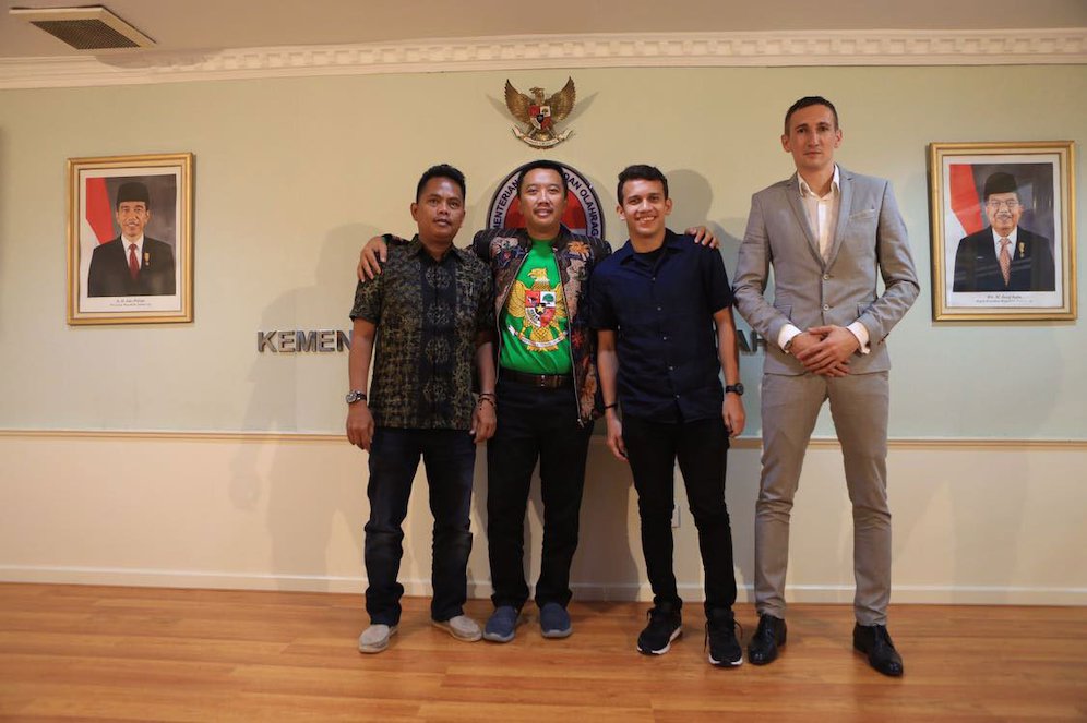 Egy bersama Dusan mendatangi Menteri Pemuda dan Olahraga (Menpora), Imam Nahrawi di Kantor Kementerian Pemuda dan Olahraga (Kemenpora), Senayan, Jakarta, Jumat (5/1/2018). Pertemuan tersebut untuk membahas soal kepindahan Egy ke Eropa.