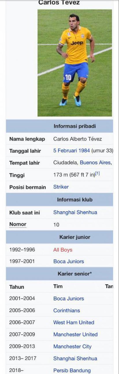 Dalam beberapa waktu, data Carlos Tevez di di Wikipedia sempat berubah. Ia diklaim akan gabung dengan Persib mulai 2018 mendatang. Namun perubahan ini bukan sesuatu yang pasti, karena laman tersebut memang bisa disunting oleh siapa saja secara bebas.
