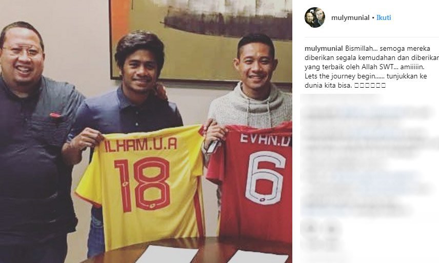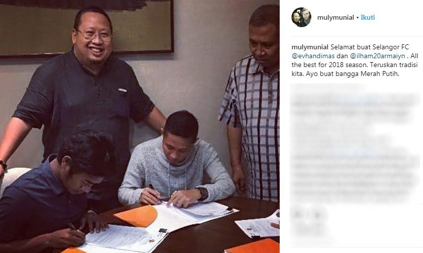 "Selamat buat Selangor, Evan, Ilham. All the best for 2018 season. Teruskan tradisi kita. Ayo buat bangga Merah Putih," tulis sang agen di media sosialnya.