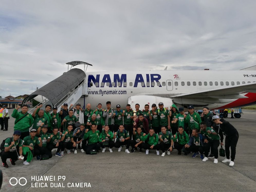 Pesawat carter yang akan membawa para pemain Surabaya tinggal landas dari Bandara Internasional Husein Sastranegara pada pukul 09.25 WIB. Sesampai di Bandara Internasional Juanda, mereka akan diarak menuju Graha Pena, Surabaya.