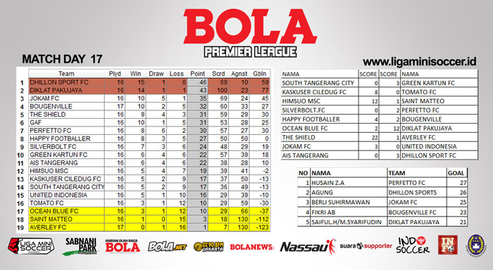 Berikut ini hasil lengkap pertandingan dari Bola Premier League dan klasemen sementara: