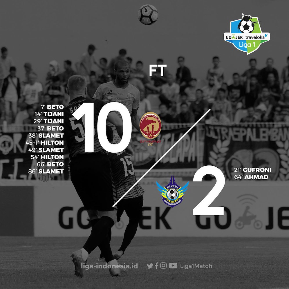 Selain itu, seperti dikutip dari Labbola, laga antara Sriwijaya kontra Persegres juga jadi laga dengan jumlah gol yang paling banyak di Liga 1 sejauh ini. Laga ini juga jadi skor kemenangan paling besar untuk Sriwijaya.