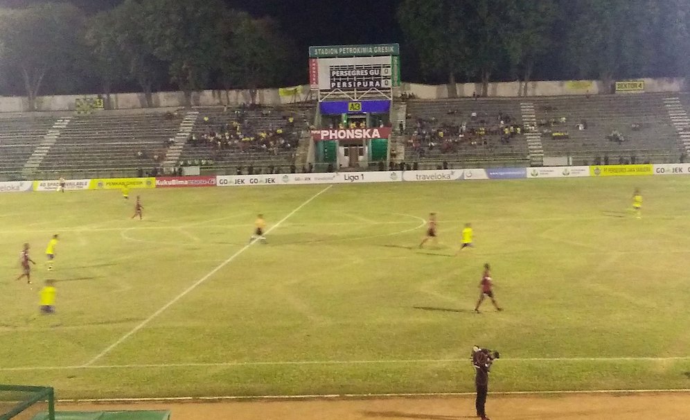 Aksi boikot suporter membuat stadion yang berlokasi di kompleks Petrokimia Gresik tersebut tampak sepi, hanya terlihat beberapa penonton yang tak memakai atribut. Bahkan suporter tim tamu terlihat lebih banyak yang hadir ke stadion.