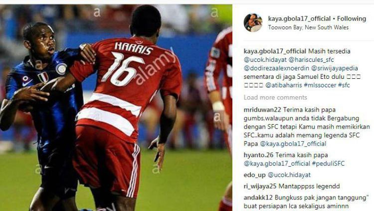 Dalam akun Instagramnya, Gumbs mengunggah foto Samuel Eto'o. Agar mendapat perhatian dari pihak manajemen, ia menyebut nama akun presiden klub, Dodi Reza Alex Noerdin dan manajer klub, Ucok Hidayat.