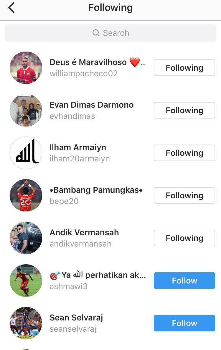 Selain dua nama tersebut, Selangor juga mengikuti beberapa akun pemain sepakbola dari Indonesia di antaranya pemain yang pernah membela Selangor yaitu Andi Vermansah, Bambang Pamungkas. Akun Ilham Udin Armaiyn juga termasuk dan dia disebut-sebut juga akan gabung dengan Selangor.