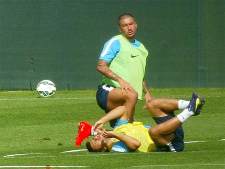 Bola.net - Usaha Sergio Aguero untuk kembali ke level stamina optimal mendapat ganjalan pekan ini, usai ia terkapar akibat mendapat tekel keras dari Aleksandar Kolarov di sesi latihan Manchester City, menurut laporan yang diturunkan oleh The Daily Mail.