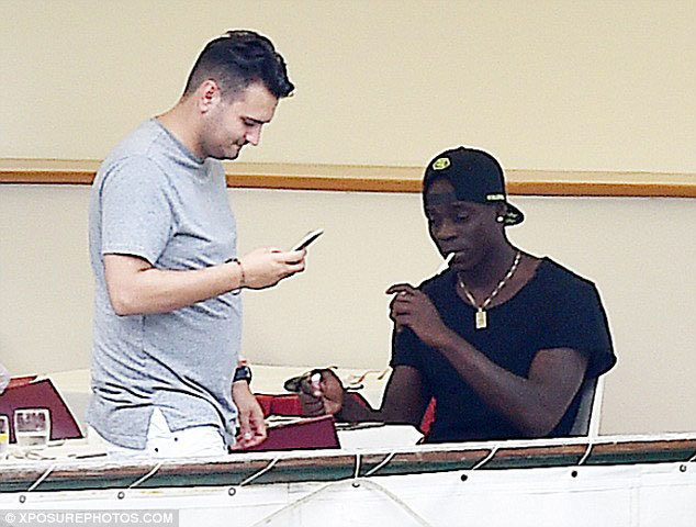 Dalam foto yang tersebar, Balotelli nampak sedang bersantai ditemani seorang rekannya. Si bengal pada momen tersebut sedang mengenakan kaus hitam dan topi. Nampak juga beberapa hidangan di mejadi tempat Balotelli sedang menikmati waktu luangnya ini.
