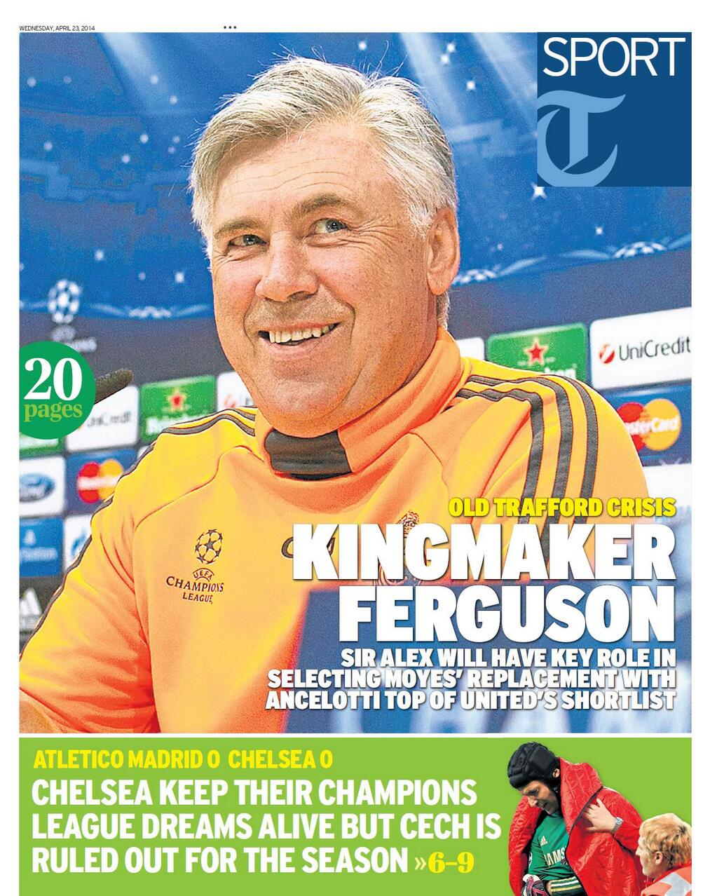 Salah satu media ternama di negeri Britania Raya itu menunjuk Carlo Ancelotti sebagai kandidat paling tepat untuk menjadi nahkoda United di musim kompetisi yang akan datang.