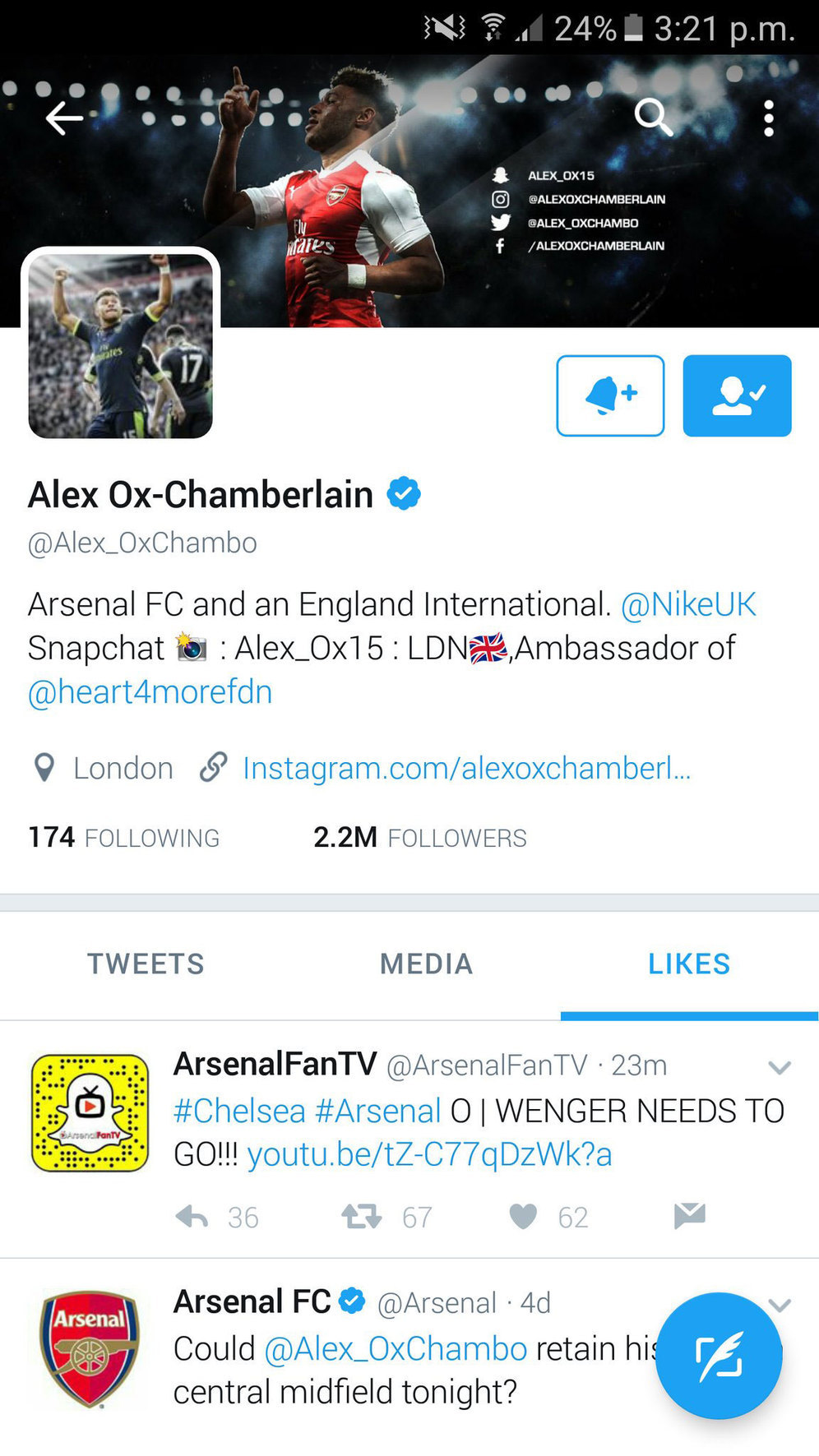 Bola.net - - Gelandang serang Alex Oxlade-Chamberlain membuat gempar para pengguna media sosial twitter. Pasalnya, ia telah memberi sebuah likes untuk tautan yang mendukung berakhirnya kebersamaan Arsenal dengan sang pelatih Arsene Wenger.