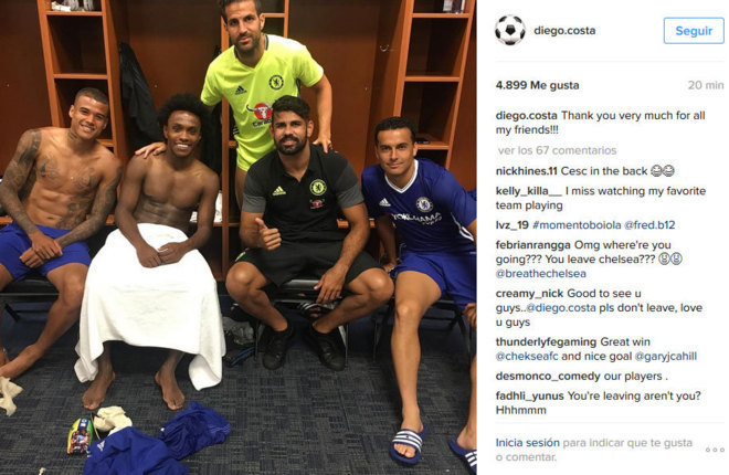 Dengan menggunakan Instagram miliknya, Costa mengunggah fotonya bersama beberapa rekannya di Chelsea, beserta dengan pesan yang diartikan oleh beberapa penggemarnya sebagai ucapan pamit pada klub London Barat.