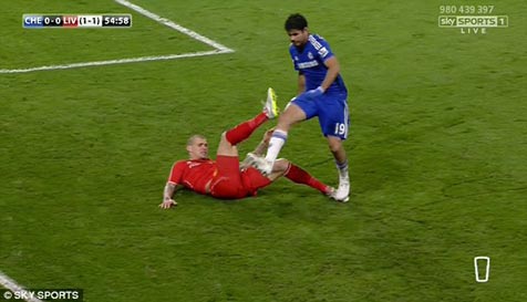 Pernyataan resmi FA berbunyi: FA telah menjatuhkan tuduhan tindakan violent conduct kepada Diego Costa. Insiden itu tidak dilihat wasit tetapi terekam dalam video. Insiden itu melibatkan Emre Can dan terjadi pada menit ke-12 pertandingan leg kedua semifinal Capital One Cup di Stamford Bridge.