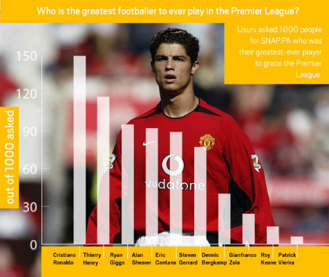 Dalam survey tersebut, Ronaldo berhasil menerima voting sebanyak 177 kali. Ia unggul cukup jauh dari pemain yang menempati peringkat kedua, Thierry Henry. Legenda Arsenal ini hanya menerima 18 persen suara. Sementara itu, Ryan Giggs berada di peringkat ketiga dengan raihan suara sebanyak 13 persen.