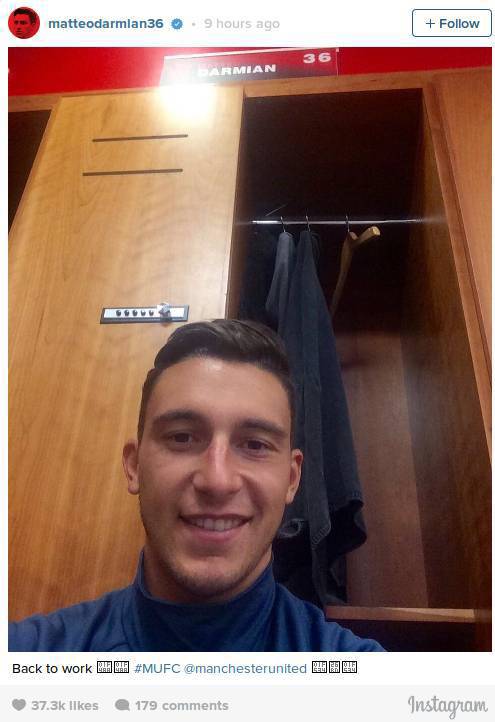 Bersama dengan foto dirinya di ruang ganti, ia menulis: "Kembali bekerja #MUFC."