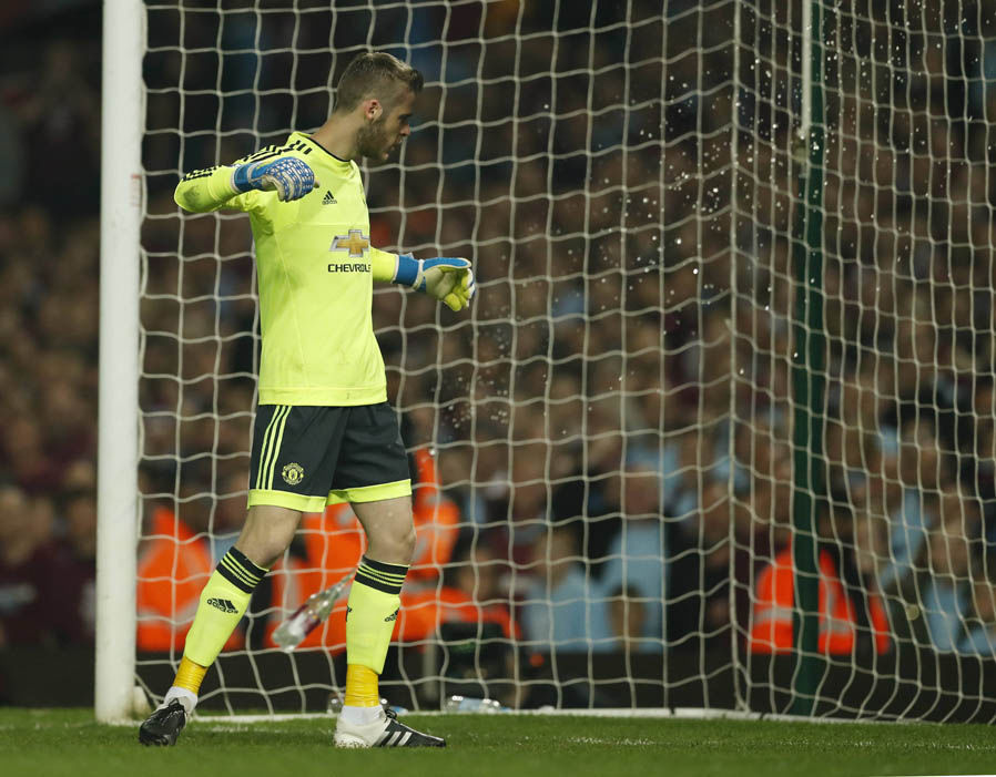 Botol yang dilempar ke arah De Gea terlihat memiliki logo West Ham, namun untungnya hanya meluncur ke sisi kiri sang kiper, tanpa memberikan dampak serius pada pemain berusia 25 tahun, sebagaimana dilansir Express.