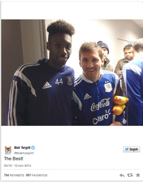 Bola.net - Pemain West Ham, Blair Turgott, belum lama ini tak menyia-nyiakan kedatangan Lionel Messi ke Upton Park, dalam rangka pertandingan uji coba antara Argentina melawan Kroasia (13/11).