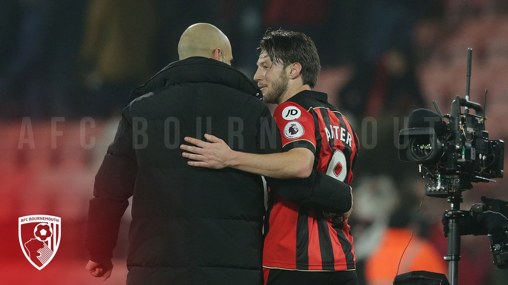 Bola.net - - Pelatih Manchester City, Josep Guardiola nampak menemui pemain Bournemouth, Harry Arter begitu kedua tim usai bertanding. Pep rupanya menghampiri Arter untuk menyampaikan empati dan do'a atas kematian anak Arter.