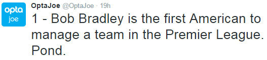 Pengangkatan itu sendiri menjadikan Bradley orang berkebangsaan Amerika pertama yang pernah menjadi manajer sebuah tim di Premier League. [initial]