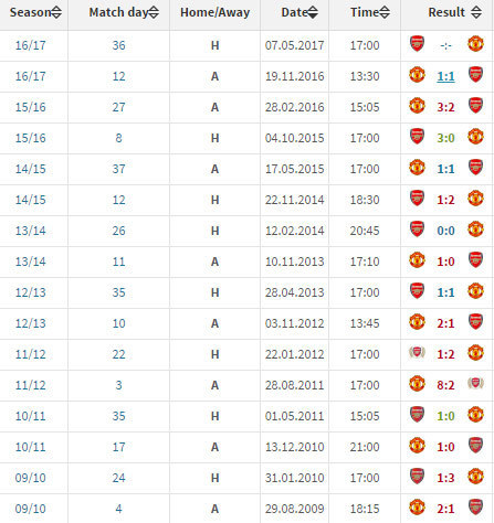 Bola.net - - Peringkat 6 Arsenal akan menjamu peringkat 5 Manchester United dalam lanjutan kompetisi Premier League 2016/17, Minggu (07/5). Arsenal hanya menang sekali (S2 K2) dalam lima pertandingan kandang terakhirnya melawan United di liga.