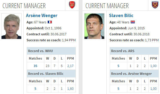 Bola.net - - Peringkat 6 Arsenal (51 poin) akan menjamu peringkat 14 West Ham (33 poin) di pekan ke-31 Premier League 2016/17, Kamis (06/4). West Ham tak pernah menang dalam dua pertemuan terakhir dengan Arsenal (S1 K1) di Premier League.