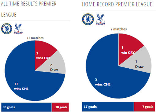 Terakhir kali menjamu Palace di Stamford Bridge, mereka justru kalah 1-2. Berikut catatan head-to-head kedua tim. Grafik dan statistik: Transfermarkt.