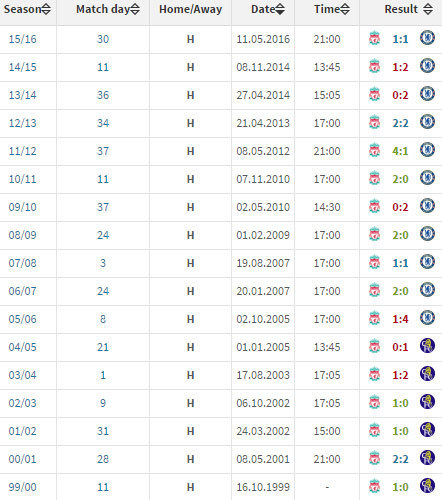 5 PERTEMUAN TERAKHIR DI KANDANG LIVERPOOL (PREMIER LEAGUE)