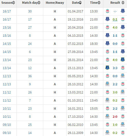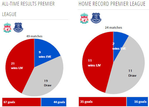 Berikut catatan head-to-head kedua tim pelakon Merseyside derby ini. Grafik dan statistik: Transfermarkt.