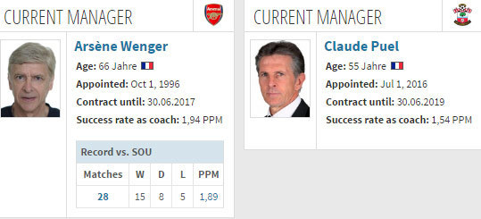 Puel baru musim ini menangani Southampton. Pria 55 tahun Prancis itu merupakan figur baru di Premier League. Sebelumnya, mantan pelatih AS Monaco, Lille, Lyon dan Nice itu belum pernah bertemu dengan Arsenal maupun sang kompatriot Wenger di kompetisi resmi.
