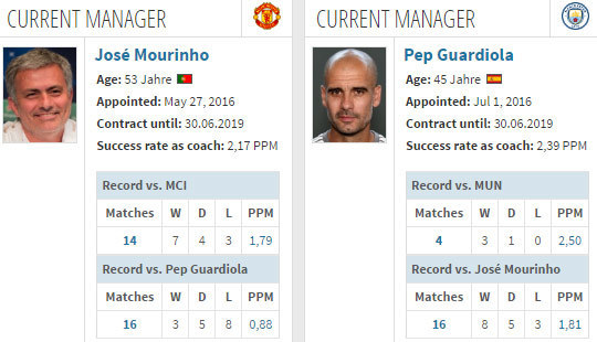 Mourinho sudah 14 kali menghadapi City bersama Chelsea serta Real Madrid, dan lebih sering menang. Namun, melawan Guardiola, dia lebih sering kalah. Saat Guardiola masih melatih Barcelona, Mourinho sudah melawannya bersama Inter Milan dan Madrid.