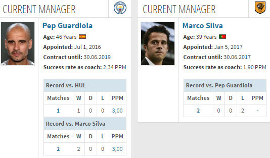 Pada pertemuan pertama di Premier League musim ini, City menang 3-0 di kandang Hull. Dalam laga itu, City menang lewat penalti Yaya Toure, gol Kelechi Iheanacho, dan bunuh diri Curtis Davies.