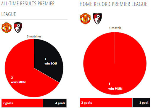 Pada pertemuan pertama di Premier League musim ini, United menang 3-1 di kandang Bournemouth. United unggul melalui Juan Mata, Wayne Rooney dan Zlatan Ibrahimovic, sedangkan Bournemouth hanya bisa menipiskan selisih skor lewat Adam Smith.