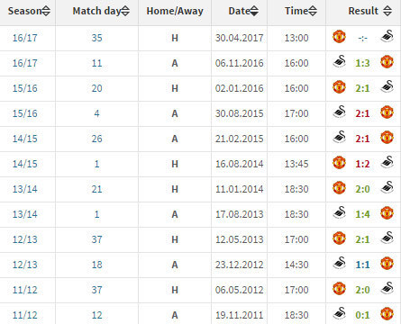 REKOR KANDANG UNITED VS SWANSEA (PREMIER LEAGUE)