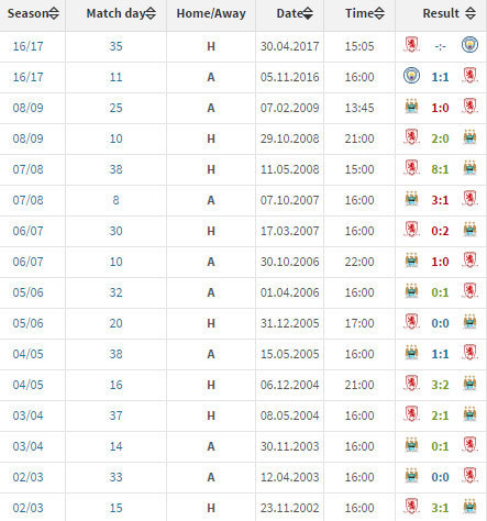 Berikut catatan head-to-head kedua tim. Grafik dan statistik: Transfermarkt.